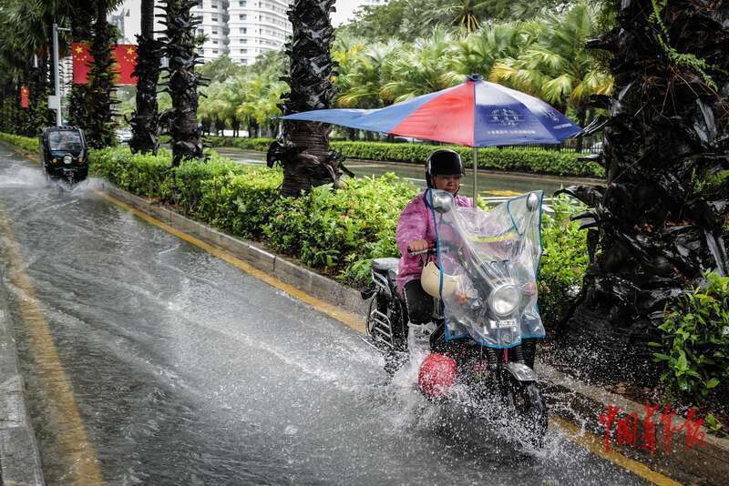9月28日,海南省三亚市,一位骑车的女士。中央气象台9月28日18时继续发布台风黄色预警。此前一天,海南省防灾减灾救灾委员会将防汛防风应急响应提升至Ⅲ级,要求三亚、五指山、万宁、乐东、陵水、保亭、琼中、三沙立即启动不低于省级响应级别的应急响应,并督促相关责任部门做好防御工作。三亚市教育局发布停课通知,寄宿制学校学生当晚不返校,9月28日全天中小学校、幼儿园、校外培训机构停课。中青报·中青网记者 赵迪/摄